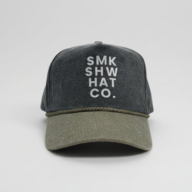 Classic meets bold with the SMKSHW Rope Trucker Hat. Featuring a denim-like fabric and retro rope detail across the brim, the "SMK SHW HAT CO" design adds a modern edge, making it perfect for fans of understated yet standout accessories. With its structured fit and adjustable snap closure, this hat is built for comfort and everyday wear.