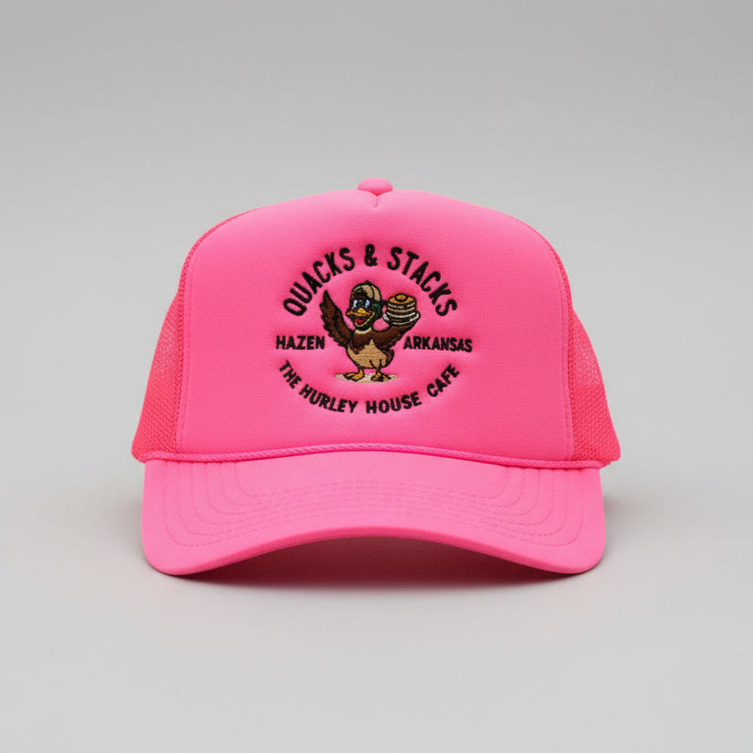 Each hat features the Quacks & Stacks duck with pancakes logo — a tribute to the traditions and the season that brings everyone home.