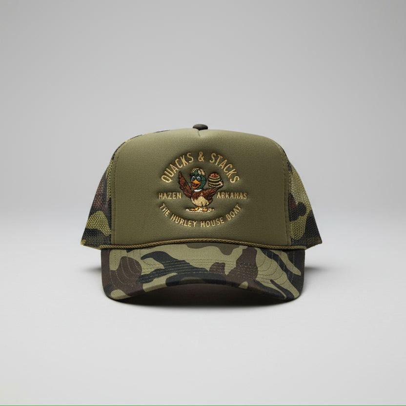 The Quacks & Stacks Hat is inspired by hometown roots, local duck-hunting culture and a Southern breakfast staple. The Hurley House Café x Smokeshow collab blends nostalgia with our signature style.